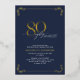 Invitación Con Relieve Metalizado 80 y fabulosa caligrafía azul y oro Cumpleaños