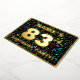 El frente de este emocionante diseño de tarjetas de invitación para Relieves metalizados de celebración de ochenta y tres años incluye un nombre personalizado, un gran número "83", el mensaje "¡FIESTA DE CUMPLEAÑOS!" y un borde. El fondo de la parte delantera presenta un vibrante y colorido patrón de notas musicales. En la parte posterior se incluyen detalles personalizados sobre el evento, como la fecha, hora, lugar/ubicación y cualquier otra información útil. Las invitaciones personalizadas como estas pueden ser una manera divertida de invitar a los asistentes a una reunión de cumpleaños que se lleva a cabo para honrar el cumpleaños 83 de alguien. Esto puede ser extra especial si esa persona es un compositor, un músico, un compositor, un cantante o un amante de la música. [~Z0000601]