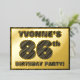 La parte delantera de esta audaz tarjeta de invitación para Relieves metalizados de la fiesta de ochenta y seis años tiene un nombre de personalizable, un gran número "86º", el mensaje "¡PARTIDO DE CUMPLEAÑOS!" y un borde, todo con un estilo rústico y sofisticado inspirado en la apariencia de granos de madera falsa. La parte posterior incluye detalles personalizados sobre el evento, como la fecha, hora, lugar y cualquier otra información útil. Invitaciones editables como estas podrían ser usadas para invitar a asistentes/invitados a una reunión de cumpleaños/fiesta que se lleva a cabo en celebración del cumpleaños 86 de alguien. [~Z0000595]