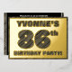 Invitación Con Relieve Metalizado 86ª Fiesta de Cumpleaños — Negrita, Faux Wood Grai