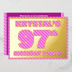 La parte delantera de esta audaz y divertida tarjeta de invitación/invitación de Relieve metalizado de 97º cumpleaños incluye un nombre personalizado, un gran número "97º", el mensaje "¡FIESTA DE CUMPLEAÑOS!", y un borde, todos con un patrón femenino de rayas rosa y rosa oscuro. En la parte posterior se incluyen detalles personalizados sobre el evento, como la fecha, la hora, el lugar y cualquier otra información que pueda ser útil. Las invitaciones de personalizable como estas podrían ser usadas para invitar a los invitados a una reunión de cumpleaños que se lleva a cabo para celebrar el cumpleaños 97 de alguien. [~Z0000597]