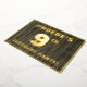The front of this bold ninth birthday party/celebration foil invitation card features a personalized name, a large number “9th”, the message “BIRTHDAY PARTY!”, and a border, all in foil. The background of the front features a rustic, yet elegant, faux wood grain appearance inspired pattern. The back features personalized details about the event, such as the date, time, place/venue, and any other information that may be relevant. Customized invitations like these might be used to invite attendees/guests to a birthday party being held to honor somebody’s 9th birthday. [~Z0000598]