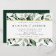 Elegantes invitaciones botánicas de bodas con vegetación acuática y Relieve metalizado dorado que bordean los detalles bodas con un fondo blanco. Las invitaciones de boda modernas y verdes se invitan a revertir para mostrar un sólido fondo verde oscuro. Diseñado para coordinar con nuestra colección Abundant Greenery boda.
