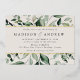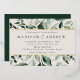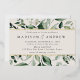 Elegantes invitaciones botánicas a bodas con vegetación acuática y Relieve metalizado dorado que bordean los detalles bodas con un fondo de color crema. Las invitaciones de boda modernas y verdes se invitan a revertir para mostrar un sólido fondo verde oscuro. Diseñado para coordinar con nuestra colección Abundant Greenery boda.