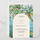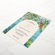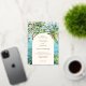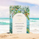 Invitación de boda tropical de acuarela soñadora con palmeras, elementos hawaianos y tonos azules serenos. Perfecta para bodas boho de playa y celebraciones de verano.