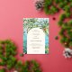 Invitación Con Relieve Metalizado Acuarela Boda Tropical Boho Playa Palmeras