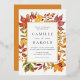 Esta elegante invitación a la boda incluye un marco de Relieve metalizado dorado emparejado con una suave coloración acuática en cálidos tonos otoñales como el óxido, el ámbar y el verde oliva. Los detalles brillantes del Relieve metalizado le dan un toque refinado, perfecto para bodas formales o de temporada. Puede personalizar esta invitación de boda de otoño con sus nombres, fecha de boda y todos los detalles del evento. El diseño combina la elegancia clásica con una acogedora paleta de inspiración natural, creando una hermosa primera impresión para sus huéspedes. Es una elección ideal para celebrar las celebraciones de otoño con un toque de lujo y calidez.
