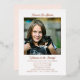 Notificación de adopción de plantillas de fotografía y plantilla de invitación de partido. Rosa color de Relieve metalizado dorado en el marco alrededor de su foto y también usado para su nombre en la parte superior. Las tarjetas planas de 5 x 7 pulgadas son de color rosa rosa claro con texto negro en la parte inferior. El texto de ejemplo es "Bienvenidos a la familia" con información fiesta debajo.