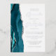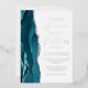 El borde izquierdo de esta elegante y moderna invitación a la boda incluye un verde azulado borde de ágata color azul azul adornado con un falso purpurina de plata. El texto de personalizable combina secuencias de comandos y sans serif en Relieve metalizado plateado real sobre fondo blanco. El reverso presenta un diseño de agate que coincide.