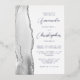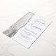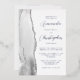 El borde izquierdo de esta elegante y moderna invitación a la boda incluye un borde de ágata de color gris con un falso purpurina de plata. El texto de personalizable combina secuencias de comandos y sans serif en Relieve metalizado plateado real sobre fondo blanco. El reverso presenta un diseño de agate que coincide.
