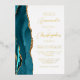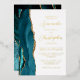 Invitación Con Relieve Metalizado Agate Verde azulado Blue Gold Script Boda