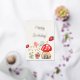 Invitación Con Relieve Metalizado Aguarela Champiñones y Fresas Fiesta Divertida