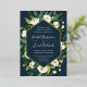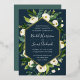 Nuestra invitación a la boda de Alabastro rodea los detalles de su día de boda con un marco geométrico moderno de vegetación acuática pintada, follaje botánico y flores blancas de rosa y peonía. El guarnecido de Relieve metalizado dorado completa el diseño para un aspecto de lujo.