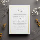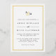 Personalice esta clásica y elegante invitación a la boda con su monograma o duograma junto con un guión decorativo. Agregue los detalles de su boda debajo con letras negras intemporales con acentos de escritura caligráfica. Una hermosa elección en blanco y negro clásico con Relieve metalizado de oro de lujo para bodas formales en cualquier temporada.