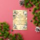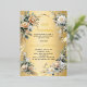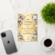Un fondo con apariencia de oro falso. Decorado con flores blancas y amarillas y una cinta dorada. Personaliza y añade un nombre y detalles.