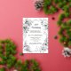 Un fondo blanco. Decorado con flores y una cinta de plata falsa. Personaliza y añade un nombre y detalles.