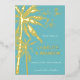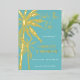 Invitación Con Relieve Metalizado Aqua Gold Palm Trees Beach Wedding Salve La Fecha