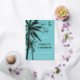 El diseño sencillo y moderno está decorado con palmeras. Personalice la plantilla con los detalles del boda, las fuentes, los colores de fondo, etc. que desee.