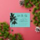 El diseño sencillo y moderno está decorado con palmeras. Personalice la plantilla con los detalles del boda, las fuentes, los colores de fondo, etc. que desee.