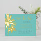 Invitación Con Relieve Metalizado Aqua Palm Trees Beach Wedding Salva La Fecha Oro
