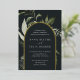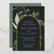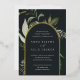 Nuestra invitación de boda Pradera Invernal rodea los detalles de su día especial con un arco de vibrante follaje de acuarela. Una elección moderna y orgánica para bodas de invierno o primavera que presenta elementos botánicos pintados de manera intrincada. Paleta de colores: Pradera Invernal, una mezcla oscura y sombría de verde salvia polvoriento apagado, helecho y follaje verde oliva sobre un fondo negro suave con borde de pan de oro.