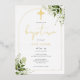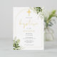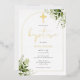 Con delicadas hojas de vegetación en acuarela y un elegante arco y crucifijo dorados, esta invitación de bautizo de papel metálico real se puede personalizar con su información especial y monograma. Diseñado por Thisisnotme©