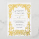 Vintage Vines Arch Ornament Frame Real Relieve metalizado dorado Invitación a la boda. Invitación del marco de la frontera barroca renacentista. Plantilla de Invitación de Boda de Palabras Tradicionales.
