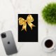 Un fondo negro clásico, decorado con un gran arco dorado. Personalice y agregue un nombre y detalles del fiesta. Texto real de Relieve metalizado de oro.
