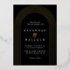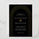 Invitaciones a bodas sencillas y elegantes con un arco metálico alineado con los detalles de tu ceremonia. Negro moderno con Relieve metalizado dorado.