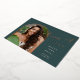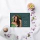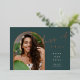 Elegante diseño de invitación de graduación con un diseño único, esta tarjeta de moda presenta una foto vertical en forma de arco sobre un rico fondo verde de jungla, con "Clase de 2022" en tipografía de escritura con letras de Relieve metalizado dorado subió a mano. Personalice con el nombre y la escuela de su graduado, y añada un mensaje personal al dorso, junto con una foto adicional. Un diseño impresionante en una paleta de colores exuberantes para anunciar su hito especial.