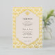 Sumérjase en la elegancia de su celebración Mehndi con la invitación Art Deco Lotus Mehndi. Este diseño cautivador, con un imponente motivo de loto y brillantes acentos de Relieve metalizado dorado, marca el tono perfecto para una noche de intrincados diseños de henna y juerga alegre. Elija entre una variedad de colores (Verde azulado, azul marino, púrpura ciruela, rojo óxido, gris carbón vegetal y beige/blanco) para que coincida con su tema y crear una primera impresión verdaderamente inolvidable.
