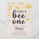 Esta encantadora invitación a la fiesta de cumpleaños con la temática de las abejas adorna ilustraciones de abejas de Relieve metalizado dorado con "tan dulce de ser uno" en letras de guiones de caligrafía negra con un fondo rosa pastel. Personalice con los detalles de su fiesta debajo.
