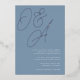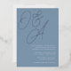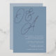 Invitación Con Relieve Metalizado Azul turbio | Boda de monograma con guión plateado