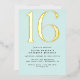 Invitaciones de 16 años de estilo moderno con un gran epígrafe "16" en Relieve metalizado metálico real sobre un fondo azul pálido bonito. (Los colores de fondo se pueden cambiar utilizando la herramienta de diseño. También puede cambiar el tipo de Relieve metalizado metálico.)