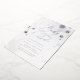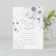 Eleva tu celebración con nuestra invitación a la ducha de bebé de invierno de Relieve metalizado plateado. El clásico mensaje "Baby, It's Cold Outside" brilla en Relieve metalizado plateado, acentuando un sutil fondo de color gris de agua y copos de nieve que brillan en plata y azul.