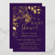 Invitación Con Relieve Metalizado Baby Shower morado y dorado floral moderno