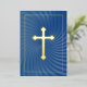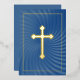 Invitación Con Relieve Metalizado Baptism Communion Confirmation Blue Swirl Cross