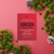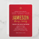 Invitación Con Relieve Metalizado BAR MITZVAH estrella moderna roja gradiente dorado