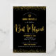 Invitación Con Relieve Metalizado Bat Mitzvah Moderno guión negrita Black Real Gold