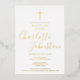 Una verdadera invitación al bautismo moderno de Relieve metalizado de oro con un elegante nombre de firma de escritura. Personalice con su bautismo especial o su información de bautizo en letras de moda sobre este diseño neutro desde el punto de vista del género. Diseñado por Thisisnotme©