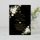 Invitación Con Relieve Metalizado Bautismo Negro Flores Blancas de Oro de Lujo