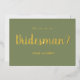 Sage Green Be My Bridesman Invitation Card con verdadero Relieve metalizado de oro. | Más productos con este diseño se encuentran en la colección siguiente.