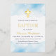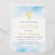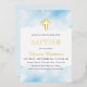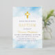 Invitación Con Relieve Metalizado Bebé azul acuarela nubes cruza el bautismo de oro