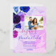 Los rosas degradados de azul a violeta a rosa caliente son hermosos con marcos de fotos y hojas de Relieve metalizado plateado a juego. El diseño de la invitación floral es versátil para los temas rosa, púrpura y azul real del rosa. Los rosas de jardín son perfectos para cualquier temporada. Tonos de azul claro, púrpura de ciruela y rosa caliente moteados en arte.