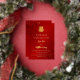 Invitación Con Relieve Metalizado Bilingüe | Boda chino simple de oro rojo
