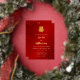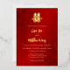 Invitación Con Relieve Metalizado Bilingüe | Boda chino simple de oro rojo