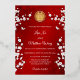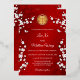Invitación Con Relieve Metalizado Bilingüe chino | Flor de cerezo blanco