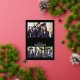 Lindo Diseño de Invitacion de Graduacion con collage de 4 fotos, Esta elegante tarjeta de invitación de graduación negra con letras metalizadas en color Oro y la invitación a la fiesta incluyen texto "Graduated" (el año se puede personalizar) en un moderno guión de caligrafía de Relieve metalizado con un moderno collage de fotos de cuatro fotos. El diseño de dos caras de la tarjeta incluye la redacción de la fiesta de graduación "Let's Celebrate" y detalles en la parte de atrás. Diseño clásico en blanco y negro con acentos dorados de color Relieve metalizado.