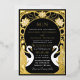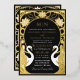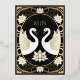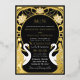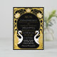 Invitación Con Relieve Metalizado Black Elegant Art Nouveau Swans Wedding
