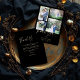 Invitación Con Relieve Metalizado Black Trendy Collage Boda 4 fotos Real Golden